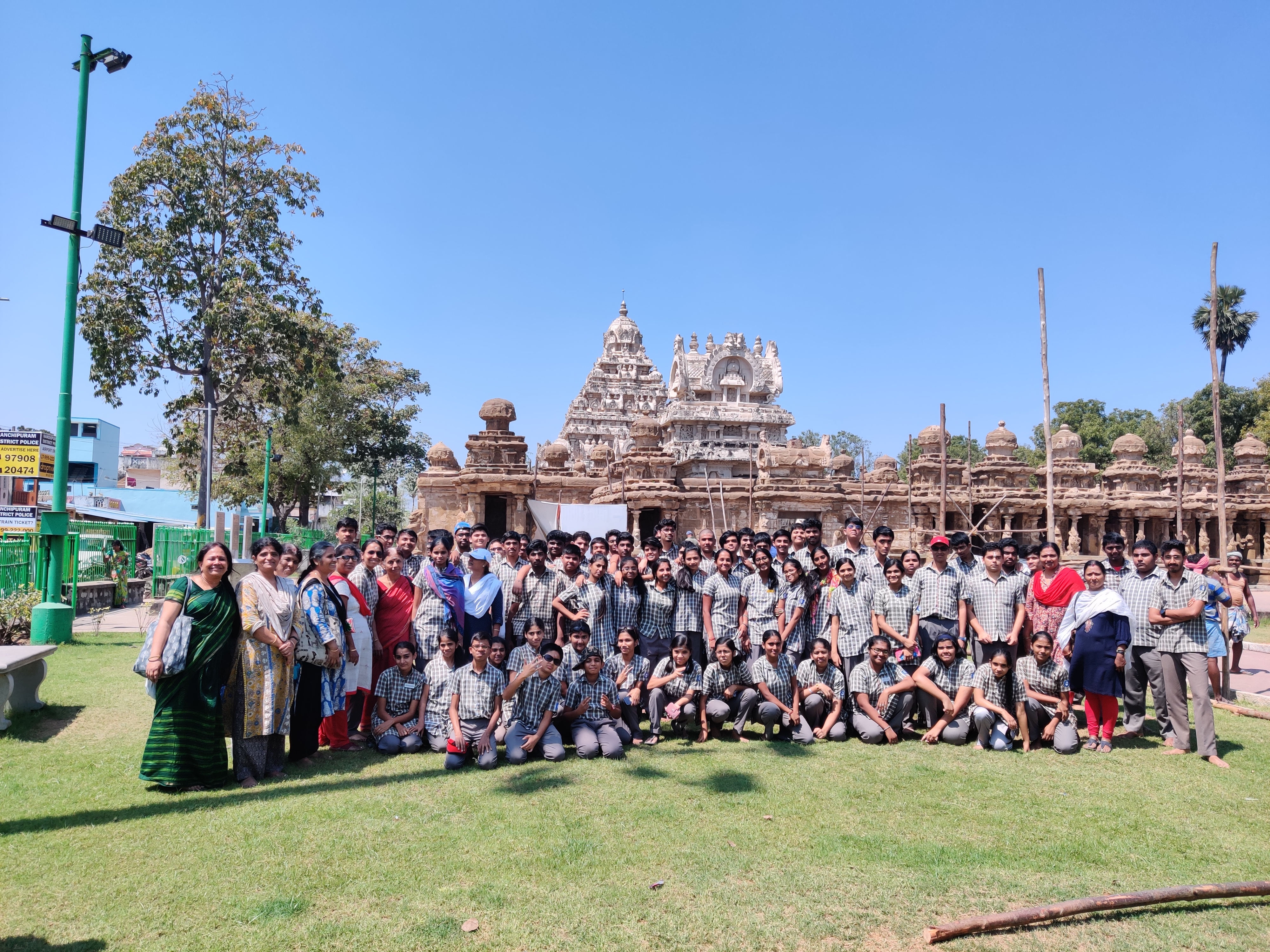 An educational trip to kanchipuram. was organized by the school for the students of Preparatory 2 onwards. The students paid visit to a weaving unit where the weavers demonstrated the age old technique of weaving.The students appreciated the weavers especially the Nios homescience subject students who learn about weaving techniques as part of their studies.The students of tourism could appreciate the painting and the sculpture of the temples they visited.The students enjoyed their visit to the Rangammal musuem run by our foundation.It was yet another memorable day for the students and the staff accompanying them.
