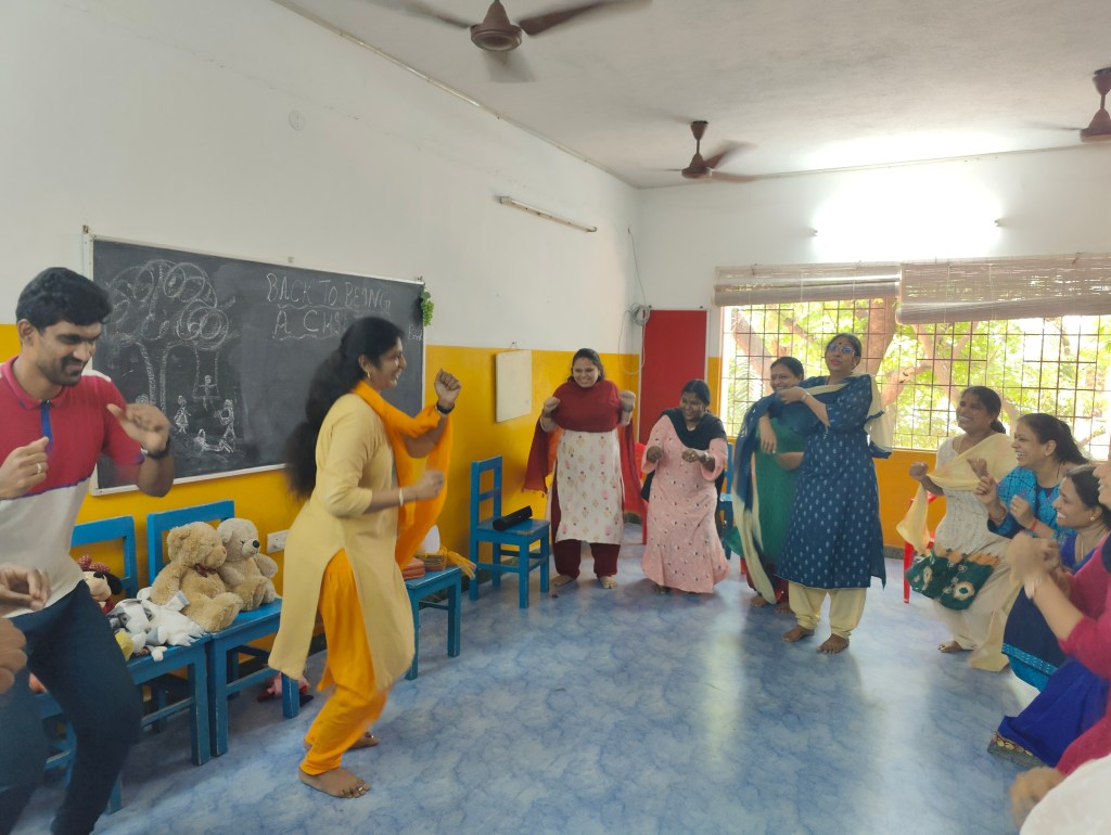 First day was about the Technical aspect of education, Looking out for the tell – tale clues and Moulding according to it. The second day session was “Connecting with the Child in You.” Going back to being a child helped to reconnect with oneself. These sessions were filled with team building exercises i.e. “I + U = We” mantra and with fun-filled activities. The workshop was a Significant Learning Curve.