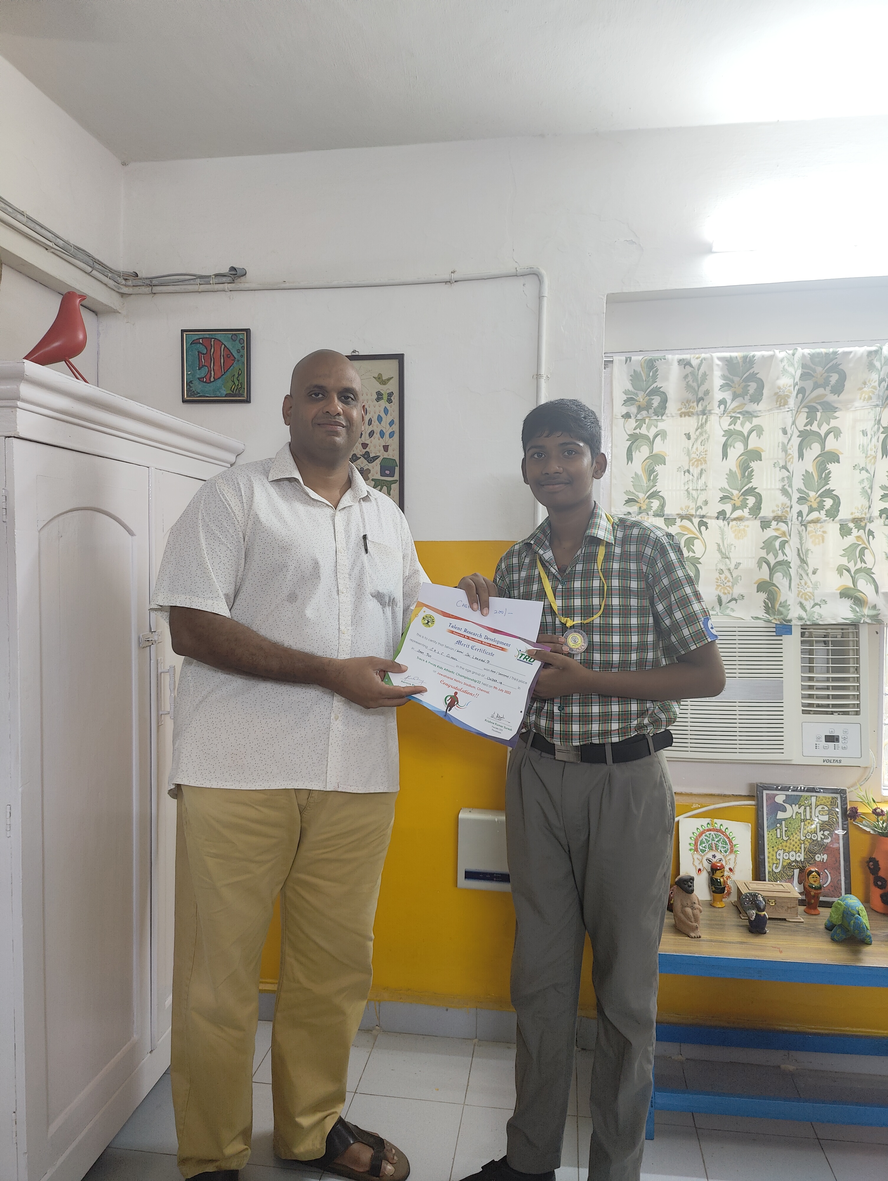 Shot Put Winner – Sai Lakshan Saraswathi Kendra Learning Centre for ChildrenJuly 21, 2022July 22, 2022Uncategorized Post navigation PreviousNext Sai Lakshan, a student of Pre-Secondary, won the 3rd place in Shot Put at the Athletic Meet held in Jawahar Lal Nehru Stadium on 9th July’22. This track and field event is a test of Brain as well as Brawn. Hip Hip Hurray !! Share this: Click to share on X (Opens in new window) X Click to share on Facebook (Opens in new window) Facebook Like Loading... Related