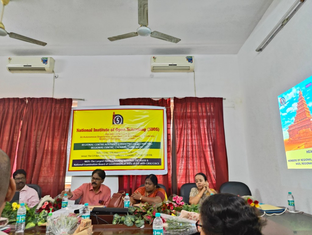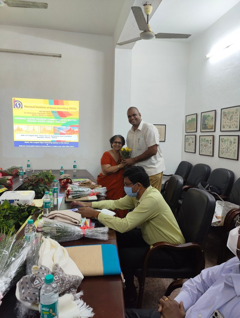 NIOS AI/RC Meet was held at C P Ramaswami Aiyar Foundation on 12th August’22. The meeting was chaired by Dr. Prashanth Krishna, Executive Director of the Foundation.