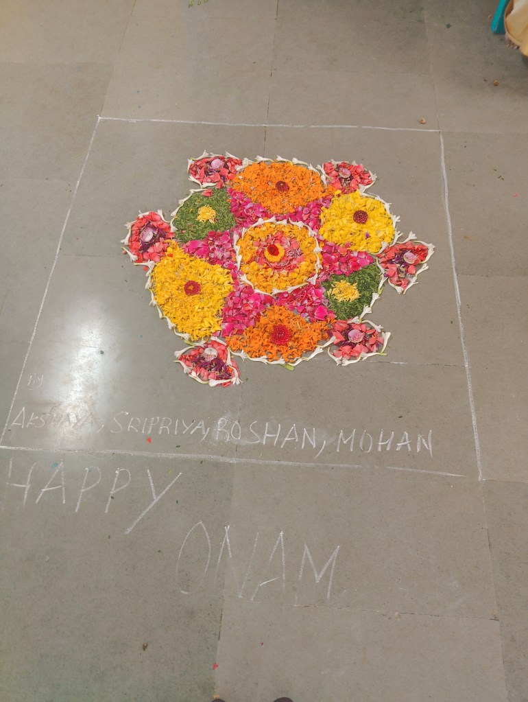 Onam, the harvest festival of Kerala, was celebrated on 7th of September 2022. The celebration started with setting up of an attractive floral decoration (Pookalam) that was reminiscent of the agrarian past of Kerala. A pookalam competition was held for students. The Impressive Designs and Artistic Creativity were the hallmarks of the pookalam. It took everyone into a World of Festivity and Fun.