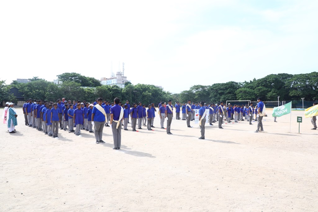 A Mega Sports Extravaganza was held at Rajarathinam Stadium, Egmore, Chennai on 4th August’23. The Extraordinary Celebration of Athleticism, Perseverance and Sportsmanship began with the arrival of the Honourable Chief Guest Mr. Dawn William, General Manager (Rescues), Blue Cross of India, Chennai. He was accompanied with Dr. Prashanth Krishna, Correspondent and Mrs. S. Niraja, Chief Psychologist.